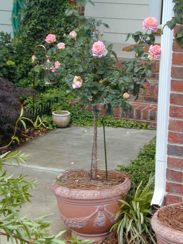Rose Gardening tip #3: Always prune dead blooms off so new ones will grow. You will want to cut them 1/4" above the branch with 5 leaves on it.